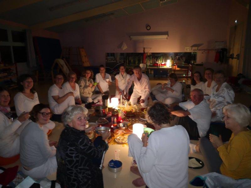 Nous avons ensuite partagé un repas sous forme d'auberge espagnole. Chacun a pu exprimer sa créativité à travers les différents plats proposés. Nous avons profité de cette soirée riche en partages, en échanges sur la pratique et les expériences de chacun, dans l'écoute et la bienveillance.